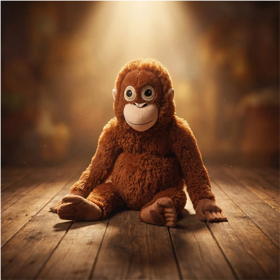 This cuddly jungle friend features clever Velcro fasteners on hands and feet so kids can wrap it around their arms, hang it from shelves, or wear it as a backpack buddy.